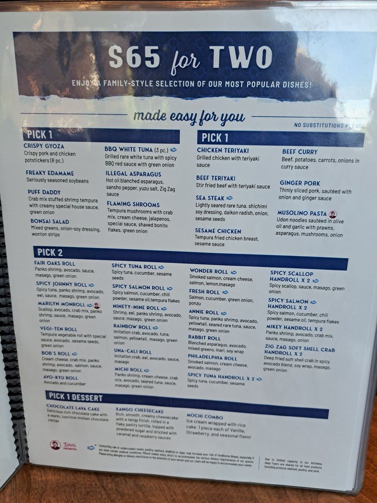 Introducing the menu at Mikuni Japanese Restaurant and Sushi Bar, you'll find a diverse range of options that cater to all tastes. From traditional sushi rolls to bento boxes and appetizers, there's something for everyone. The restaurant offers a casual and trendy atmosphere, perfect for a family celebration or a business meeting. Customers rave about the excellent service, with mentions of attentive staff like Nicole, who goes above and beyond to ensure a memorable dining experience. The menu boasts a variety of cocktails with unique flavors, along with fresh and delicious sushi offerings. Don't miss the BBQ Tuna appetizer or the charashi bowl for a satisfying meal. With a welcoming ambiance and top-notch service, Mikuni is a go-to spot for quality Japanese cuisine in Roseville, CA.